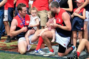 Off-field he has also been prolific, producing three beautiful children, all of which are still under 5 years old – Arlia (4 years), Keaton (2) and Kolby (1). Of course, none of his on-field or off-field achievements could have been realised without the loving and enduring support of his wife, another Demon legend, Lauren ‘Loz’ Wright (nee Cain), the Club’s head physio for many years.