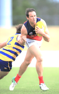 From 2005 to 2018, Shep played mainly first grade footy, but not all of it has been at Pennant Hills. Between 2010 and 2013, lured by the ‘Big Bucks’, Shep had four seasons at the Albury Tigers playing in the strong Ovens and Murray Football League. “He played an important role in defence during a golden era for the [Albury] club and played in the last two of their hat-trick of flags from 2009 to 2011.’’ So Shep played 78 games for the Tigers, won two premierships from four grand finals, was an O&M and NSW Country representative in 2010 and was the Tigers’ Player’s Player in 2013. During his time there, Shep played against many highly talented opponents, none more notable than the former Carlton gun Brendan ‘The Shag’ Fevola. A two-time Coleman Medallist, Fevola played for Yarrawonga in the O&M League in 2012 and his 5 goals in the Grand Final against Albury Tigers denied Shep a hat-trick of flags!