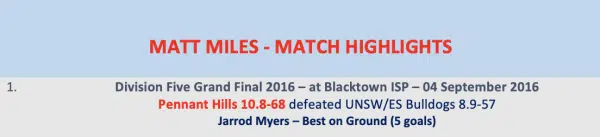 Season 2022 is Matt’s 11th season of footy with the Pennant Hills senior club. He is 30 years old.
