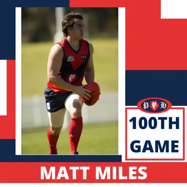 Last weekend, after a miraculous recovery from injury, Matt Miles played his 100th open-age game for the Demons.