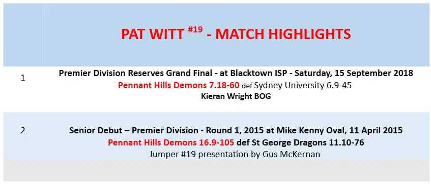 This weekend the Club celebrates Pat Witt’s 200th open-age game for the Pennant Hills Demons.