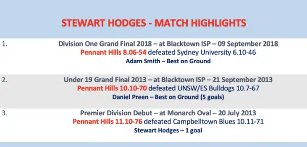 Season 2022 is Stewie’s 12th season of footy with the Pennant Hills senior club. This year he turned 27.